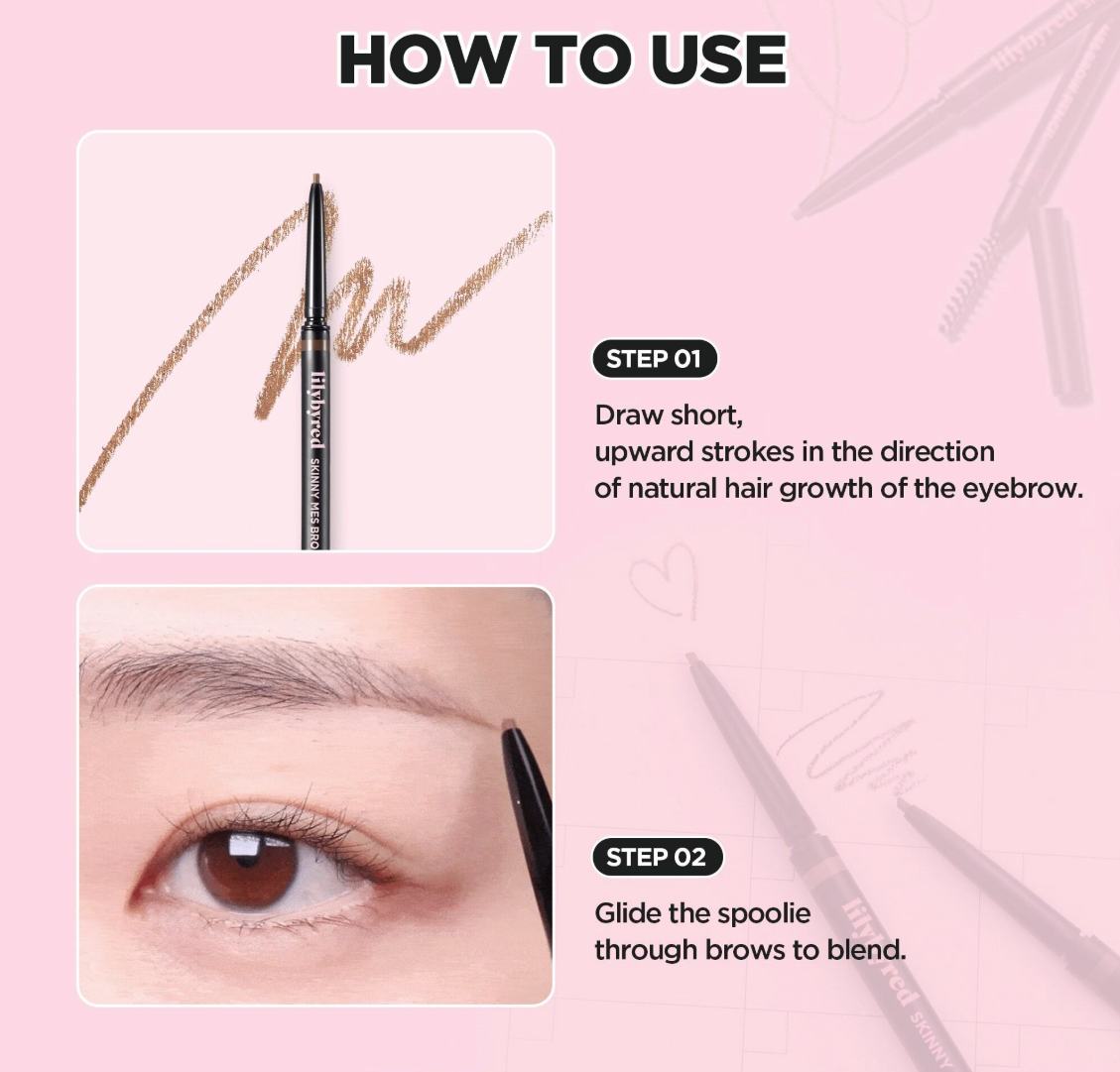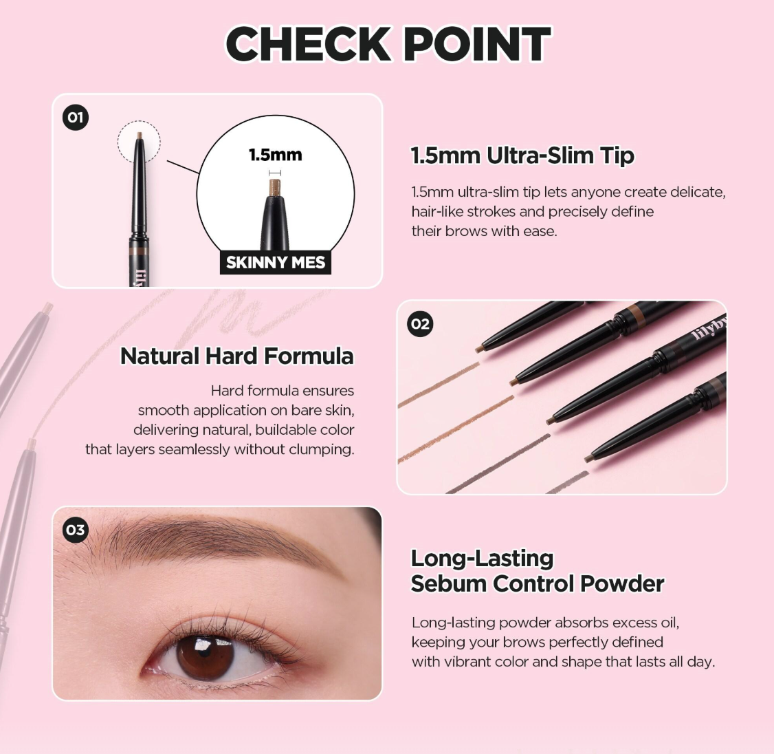 Skinny brow pencil with 1.5mm super slim lead creates sharp, delicate eyebrow express.